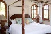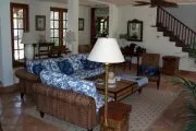 | 1 to 14 guests (using 7 bedrooms, with possibly 2 additional guests using the upstairs alcove’s 2-twin trundle bed) will have use of the Main Villa only. Use of A La Mer’s Cottage is added to the Main Villa for additional guests. THE COTTAGE IS NEVER RENTED SEPARATELY TO ANOTHER PARTY. |