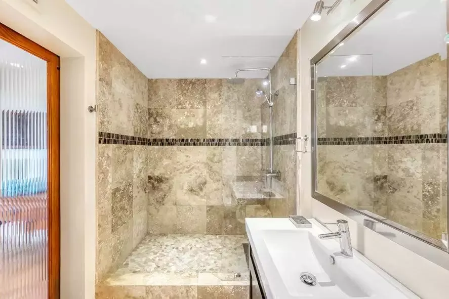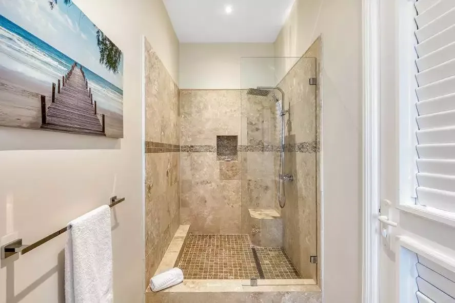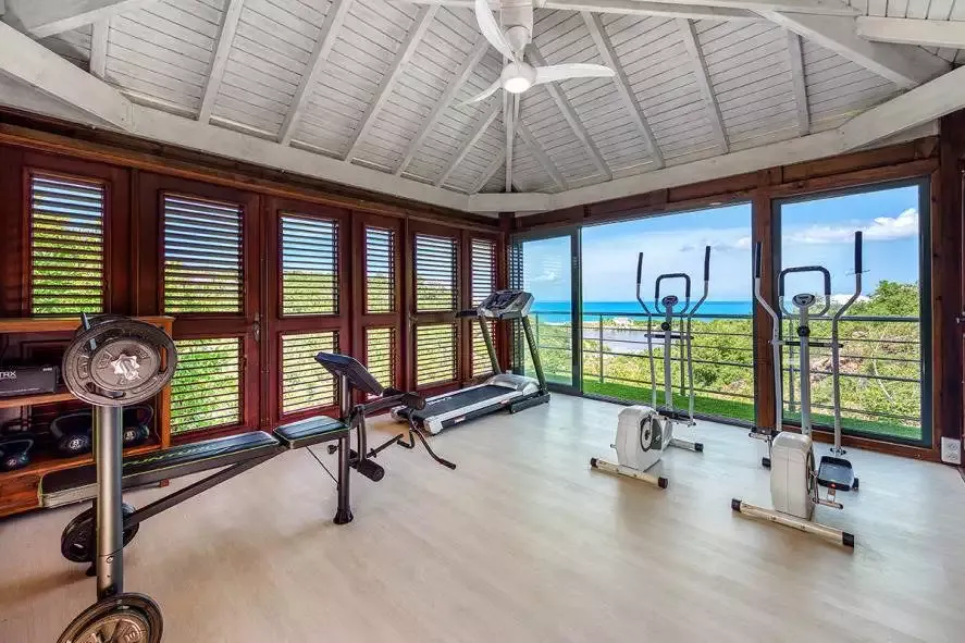 Villa Azur Dream offers 7 bedrooms with their ensuite bathroom, 5 bedrooms on the upper level and 2 bedrooms on the lower level, a heated pool, a gym with amazing views, a very well equipped kitchen, 2 dining rooms and a BBQ area