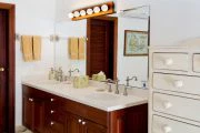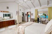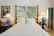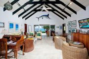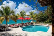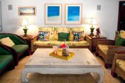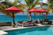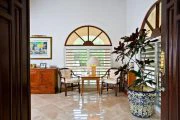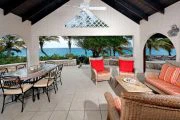 This wonderful, contemporary, West Indian style home with it’s lovely arches on the sea side is located directly on Long Beach with over a mile of shimmering white sand. The home was recently renovated and has had more extensive renovations including an new portico entry way, extended living area and and indoor/outdoor bar overlooking the pool area. There are three air-conditioned bedrooms, one king and two queen size beds, each with their own ensuite baths. All three bedrooms open out to the covered gallery that runs the full length of the villa. Two of the bedrooms also open into the main living areas of the villa. There is a large open air living/dining room with direct access to the covered gallery. Outdoors there is ample space for covered dining and enjoying the wonderful ocean view. The music system has speakers in almost every room as well as outside. Marble floors throughout give this Caribbean rattan and antique furnished home a very comfortable feeling. A large swimming pool between the house and the beach is a wonderful place to relax and spend the day lounging. Due to the privacy it provides this home has played host to many famous people.