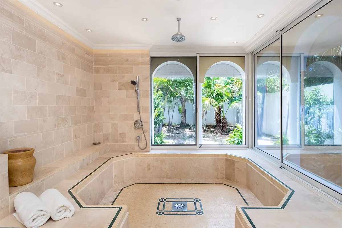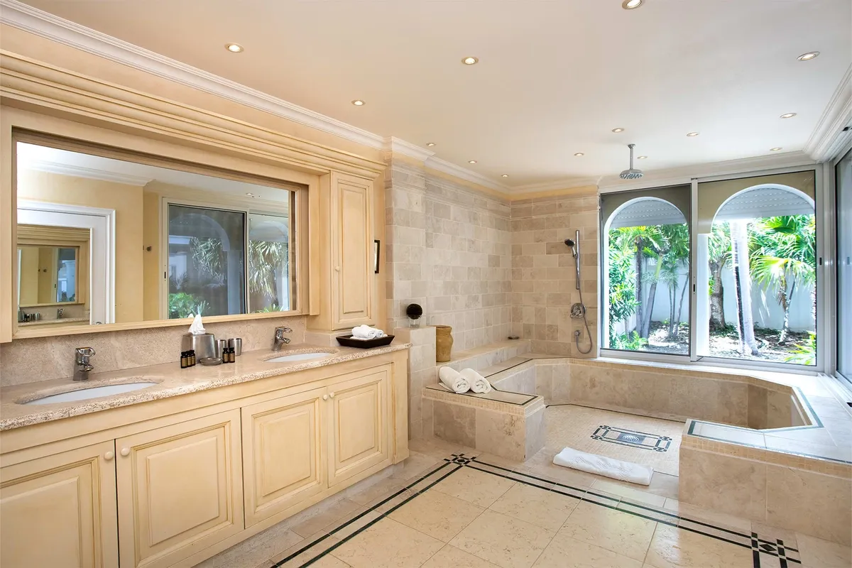 Beaulieu features three equal oversized suites out of Italian tumbled marble; each one with a sea view, even from the bathroom. All of them have a private terrace as well as a private patio or garden.