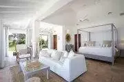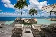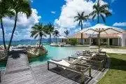 Belle Etoile is a stunning estate villa with a French Caribbean style. It is quietly grand, yet a comfortable and relaxing space filled both inside and out. It is gorgeously landscaped and dramatically positioned on a cliff just above the sea; very private. The panoramic views are filled with limitless shades of blue from the pool that appears to flow directly into the sea and beyond to Anguilla and the horizon. You can see Marigot and Creole Rock in Grand Case. Sunsets and nights are romantic perfection. This is a perfect villa for tropical weddings and equally suited to getaways with good friends.