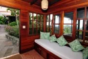 | bedding: | Master Suite: 1 king. Guest Suite Pavilion: Blue Suite = 1 king (OR 2 twins, your choice), + 2 single built-in daybeds* in an open alcove off the main bedroom. Green Suite = 1 queen, + 1 single built-in daybed in an open alcove off the main bedroom area. |