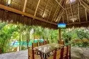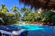 The main level has a covered terrace with outdoor dining and living areas that open onto the very private pool and terrace surrounded by lush tropical gardens. There is also a palapa covered table poolside for cards or meals with the BBQ nearby. A few steps from the villa are the great sandy beaches and you can walk along the beach to popular Los Muertos Beach for water sports and a bit of the local fun, evenings it is a short taxi ride to the Romantic zone and all of Puerto Vallarta’s restaurants, shopping and Nightlife.