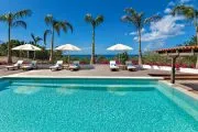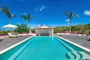 Beautifully designed gardens surround the house and terraces. Epi wood decks on multi levels offer endless options for dining, lounging and sunning. You can be private or together with your friends or family. The upper deck flows off the main indoor living area. Under wide covered gazebos, you can lounge, dine or fire up the barbeque. Step down to the gorgeous lower level for a swim in the inviting pool surrounded by covered terraces and sundecks. There is a separate kid’s playground for the young ones.