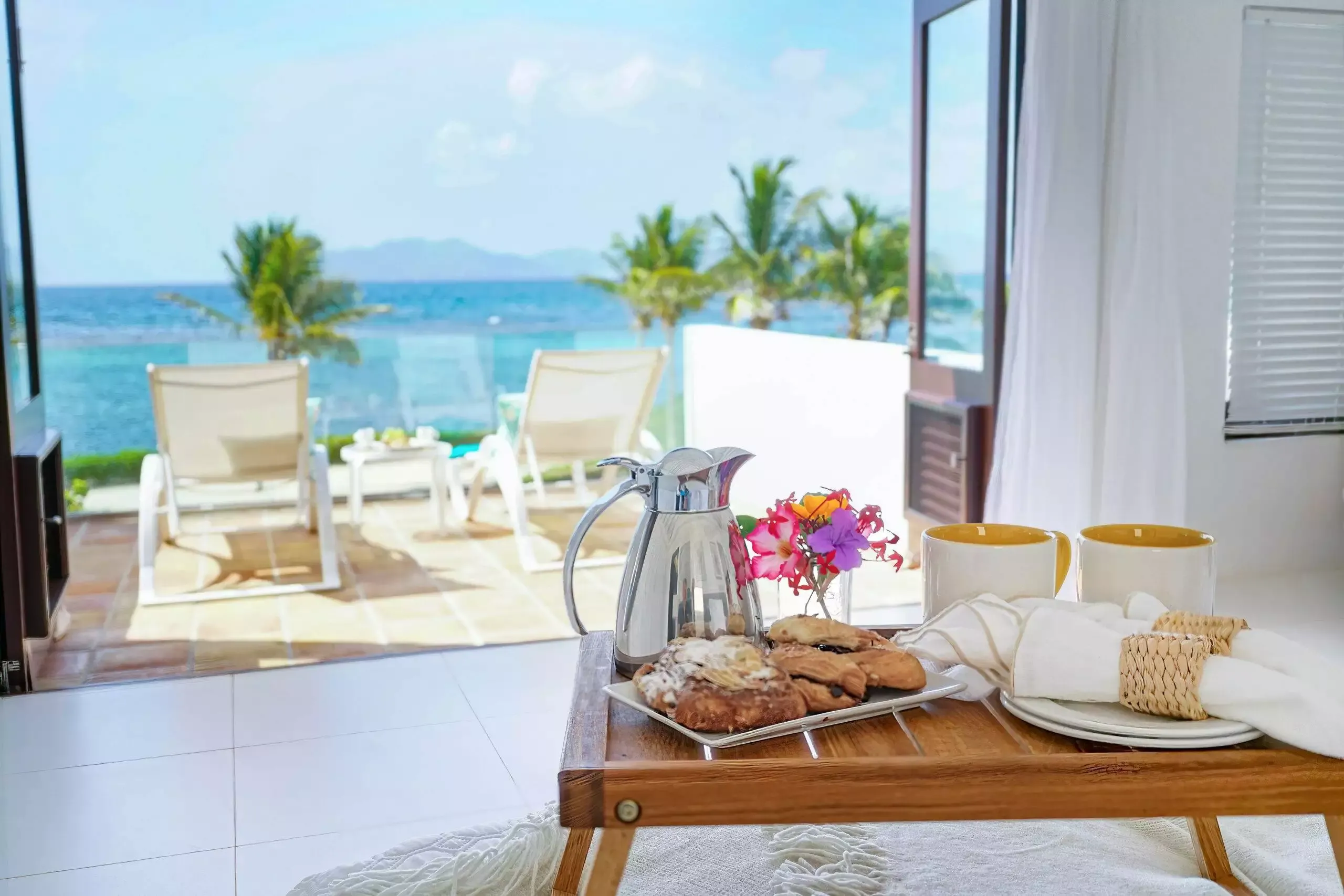Guests are invited to unwind in the warm trade winds on their private, white sand beach, sip cocktails at one of two turquoise pools, or enjoy a number of activities on the estate including the complimentary use of the tennis court with pavilion, water sports, or the well-equipped gym.