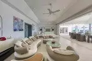 A modern gourmet kitchen opens to the view, connecting the chef with the guests.The three bedrooms are equal in size, spacious, and comfortable. Each room has private indoor and outdoor seating.