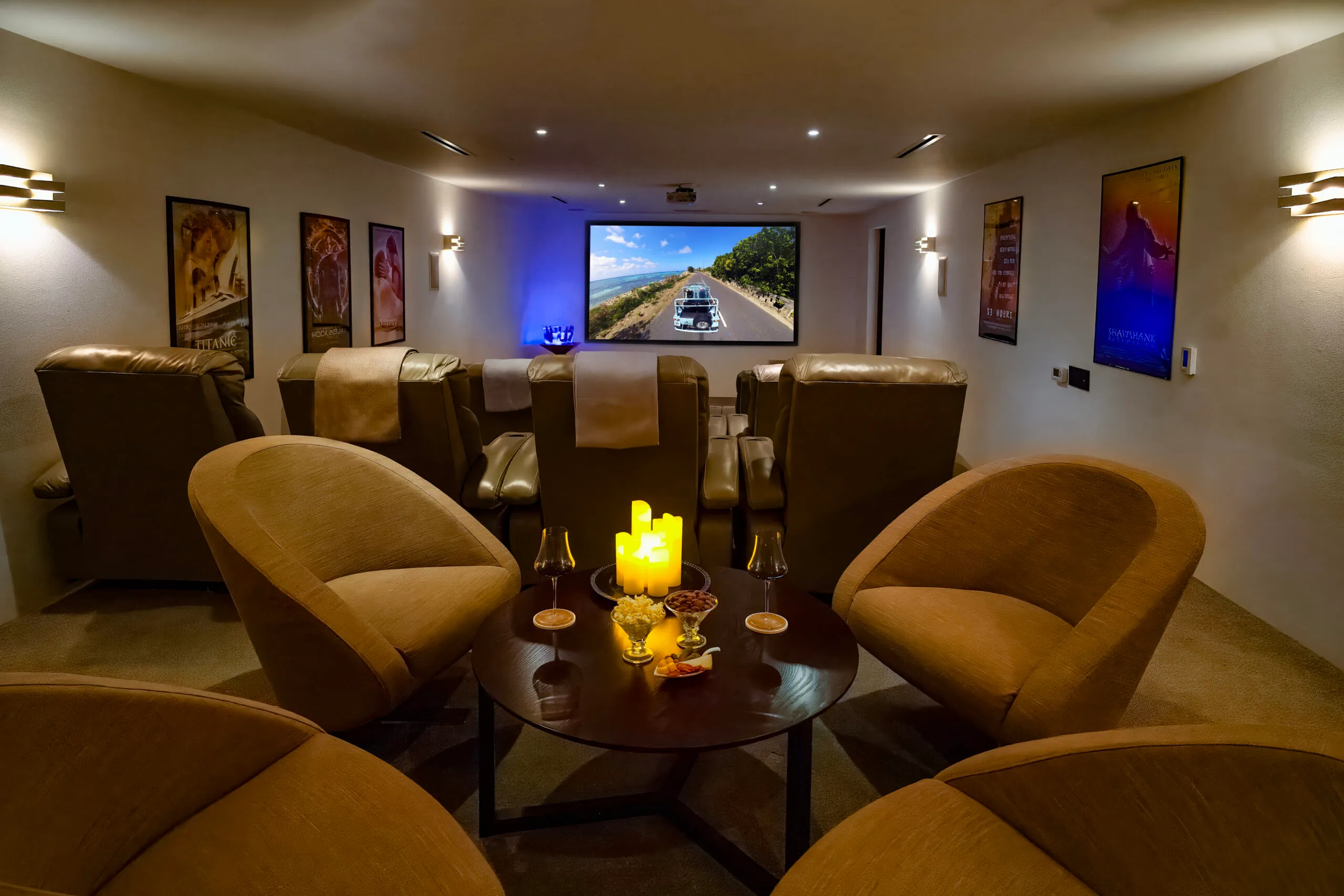 On the lower level is a luxurious entertainment suite, which includes a spacious home theatre and state-of-the-art entertainment and leisure system with sound, light, music and overall mood control. Guests can totally unwind in the games room with its pool table and other recreational amenities, or keep up with their fitness in the fully-equipped, modern gym.