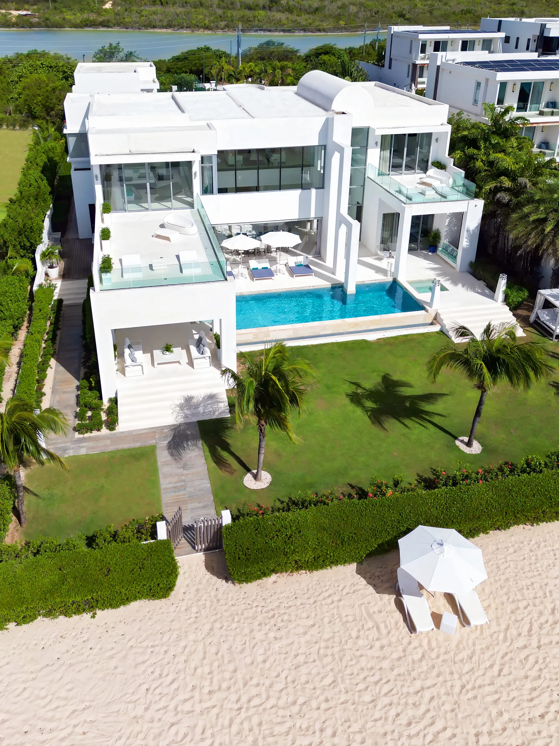 The Beach House is an award-winning, luxurious Caribbean home set on a picturesque beachfront location in Anguilla. The property is surrounded by calm, turquoise waters, white sand beaches and exotic gardens. It sits on 1.5 acres of land right on the beach of Meads Bay on the island’s west coast and boasts 17,000 square feet of living space.