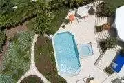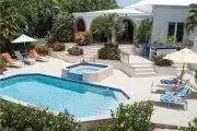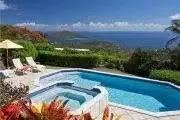 Outside the villa there is a gas grill and dining table for 8, the perfect place for al fresco meals. Just below the covered patio is the private pool and built in Jacuzzi with ocean views in the distance.