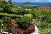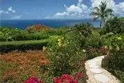Perched on a hill, Villa Gardenia offers old charm with the best of modern life. This villa has a 6′ wall surrounding it assuring your privacy but does not obstruct your ocean views. The location is a short drive to famous Magens Bay Beach or to Red Hook the East End of St. Thomas where there are a variety of shops, grocery stores and restaurants. The entry into the villa is through a gate into a landscaped garden with a Koi pond. Inside the villa are three bedrooms, with three en-suite baths, all rooms have air conditioning also. The kitchen will please a cook from simple to gourmet. It has a breakfast bar, 5-burner gas cook top, 2 ovens and an array of utensils.