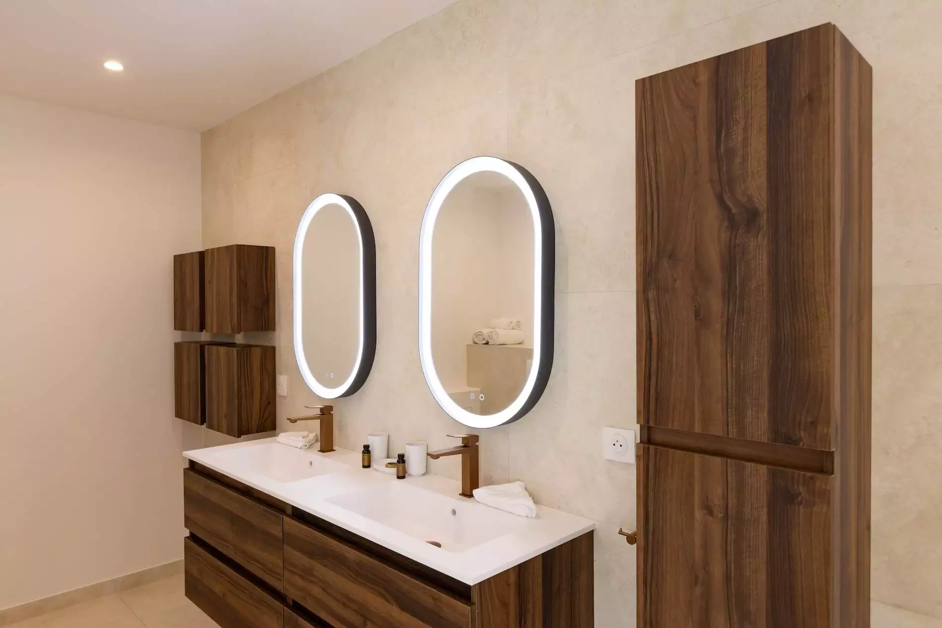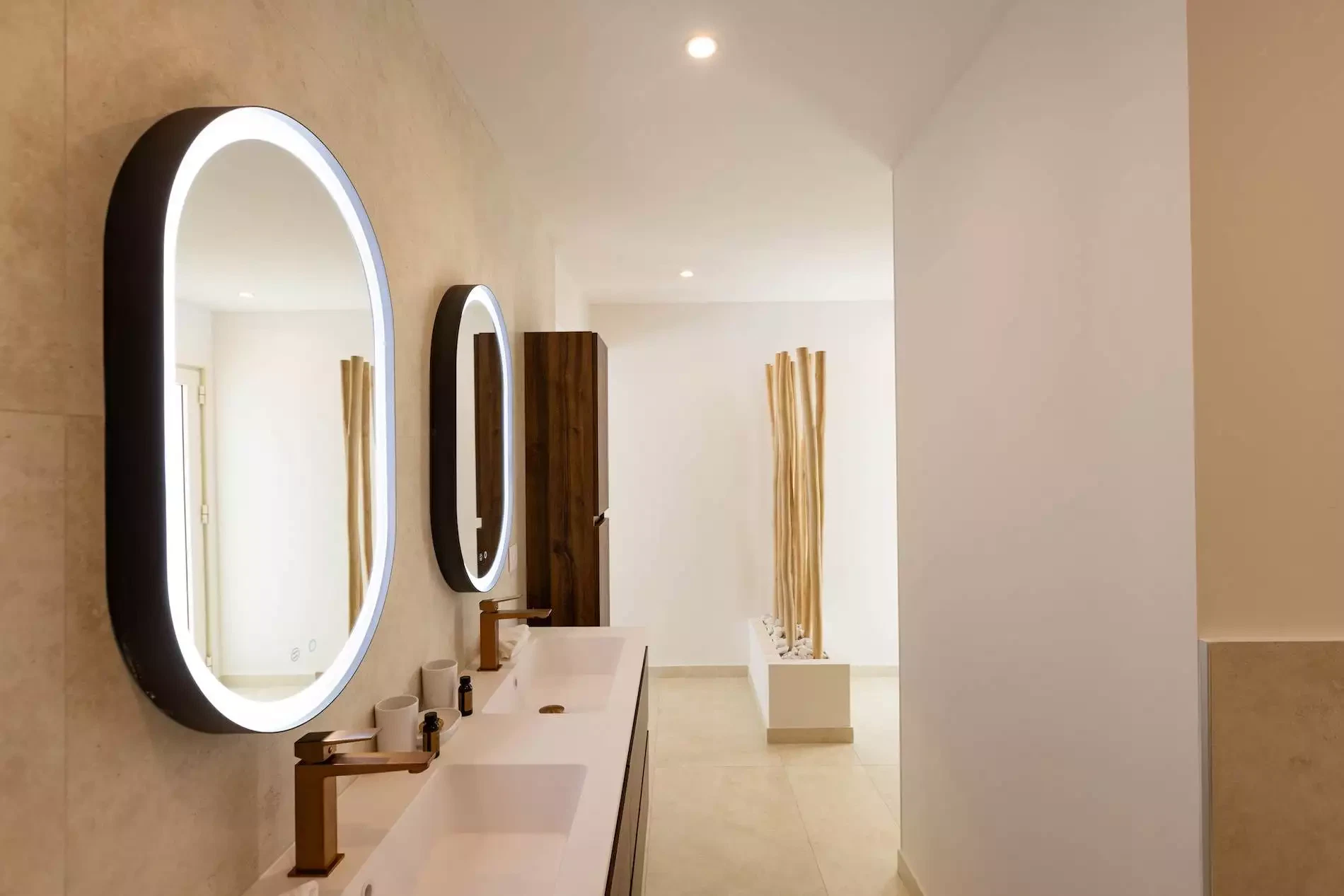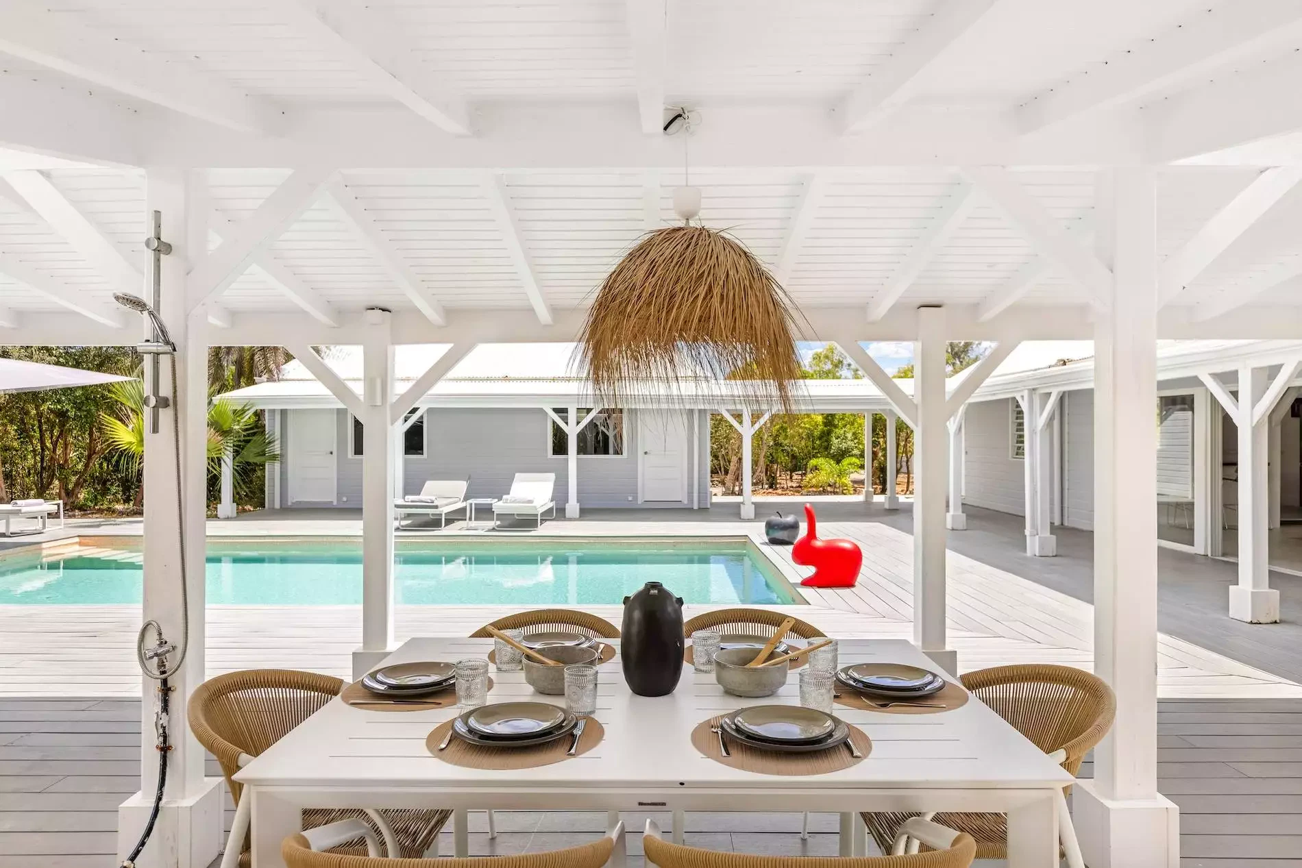 Each of the three bedrooms is located in its own separate bungalow, with direct access to the terrace and pool. This unique configuration ensures maximum privacy for every guest while preserving the warm and welcoming atmosphere of a shared holiday home.