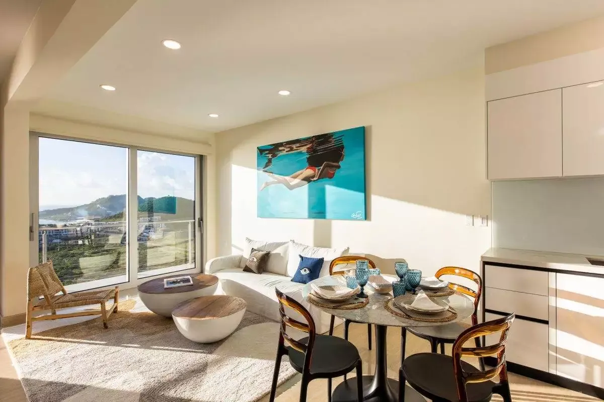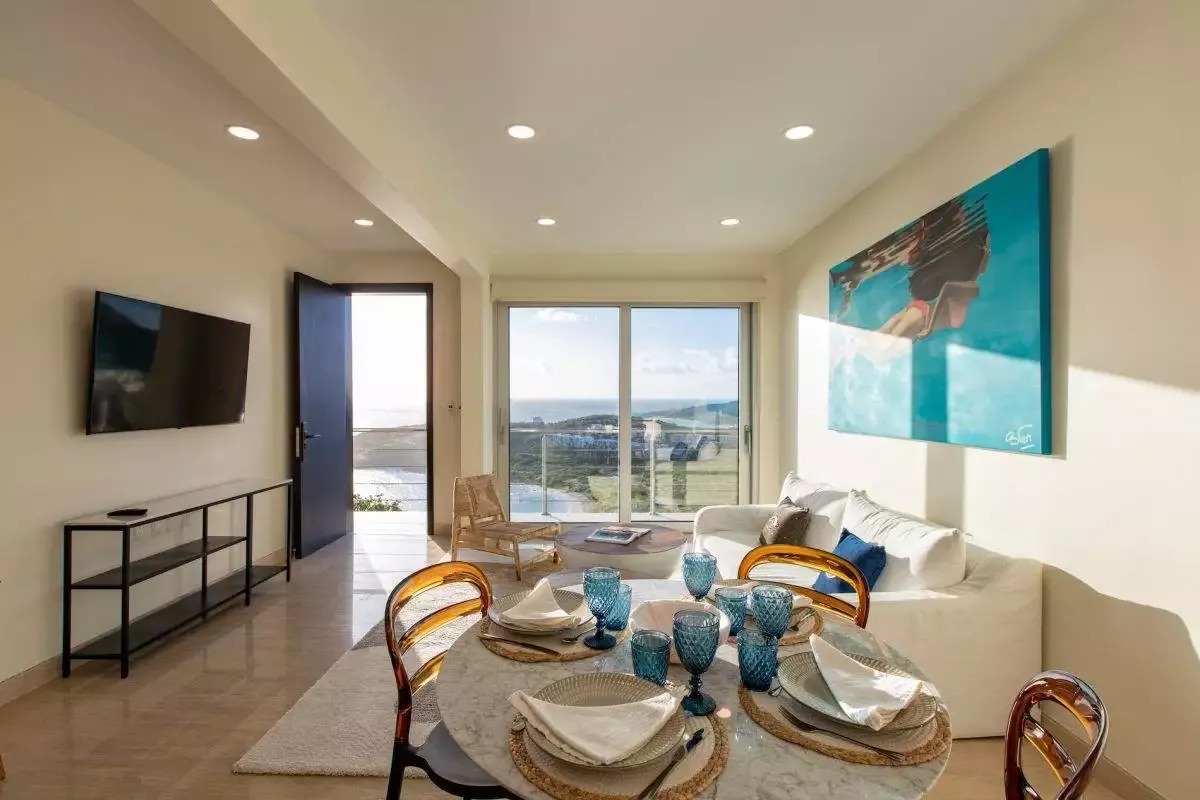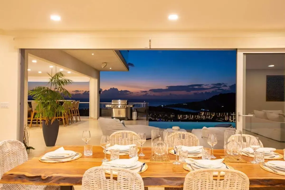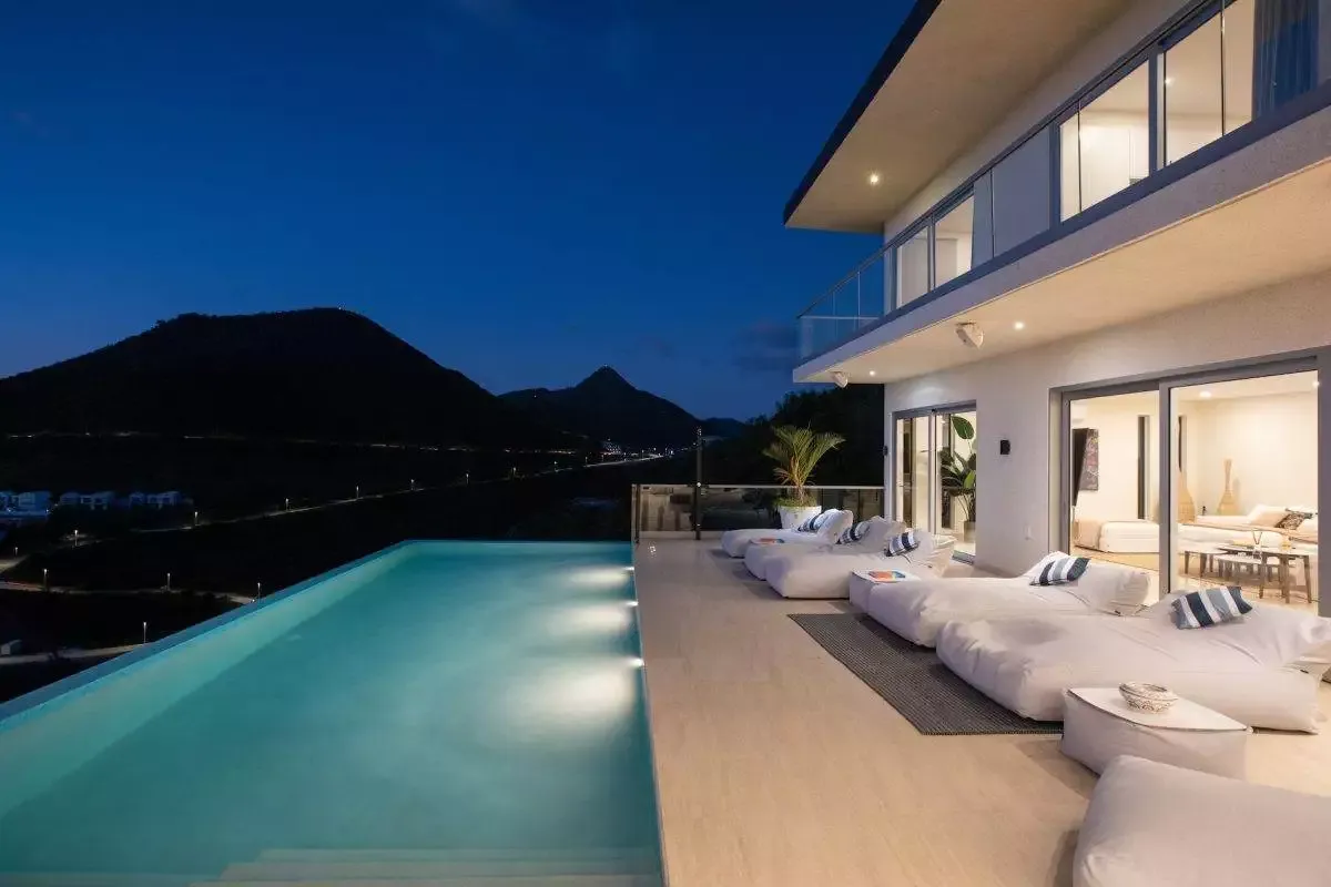 In the evening, enjoy the twinkling lights of nearby villas along the hillsides and cruise ships passing in the distance.