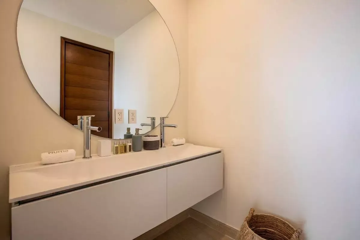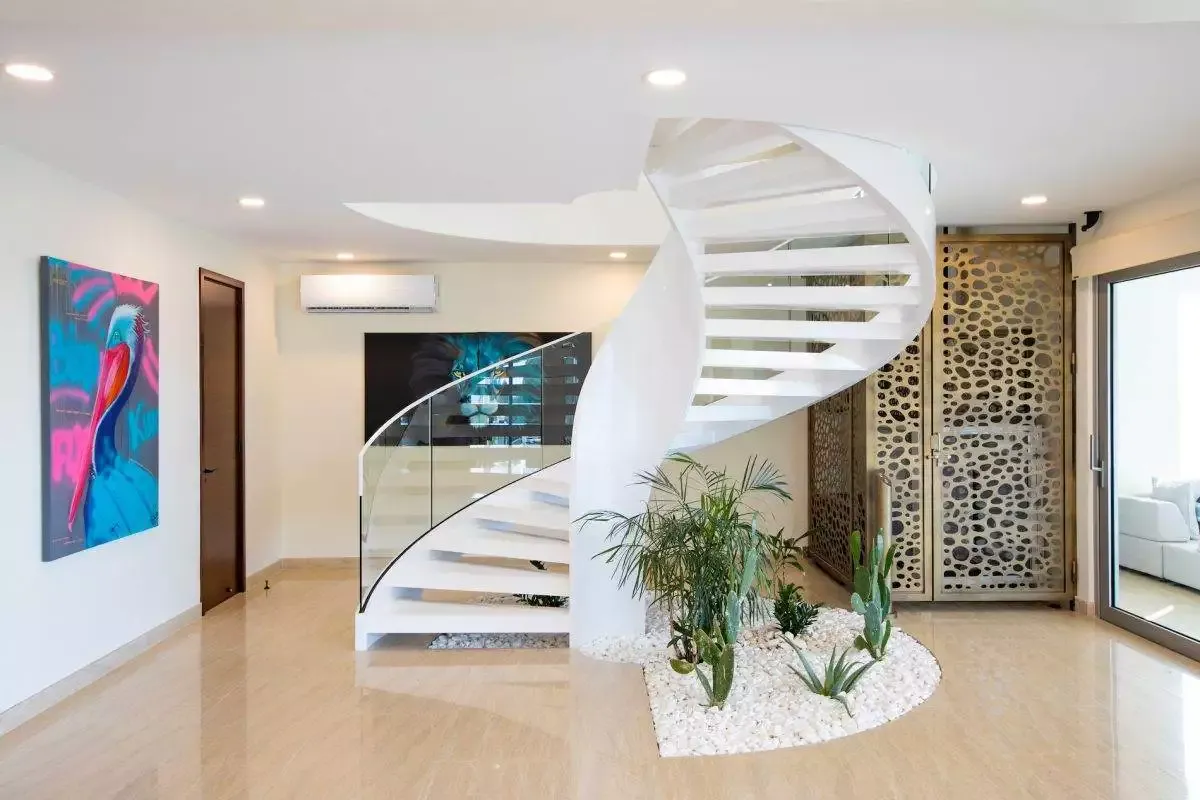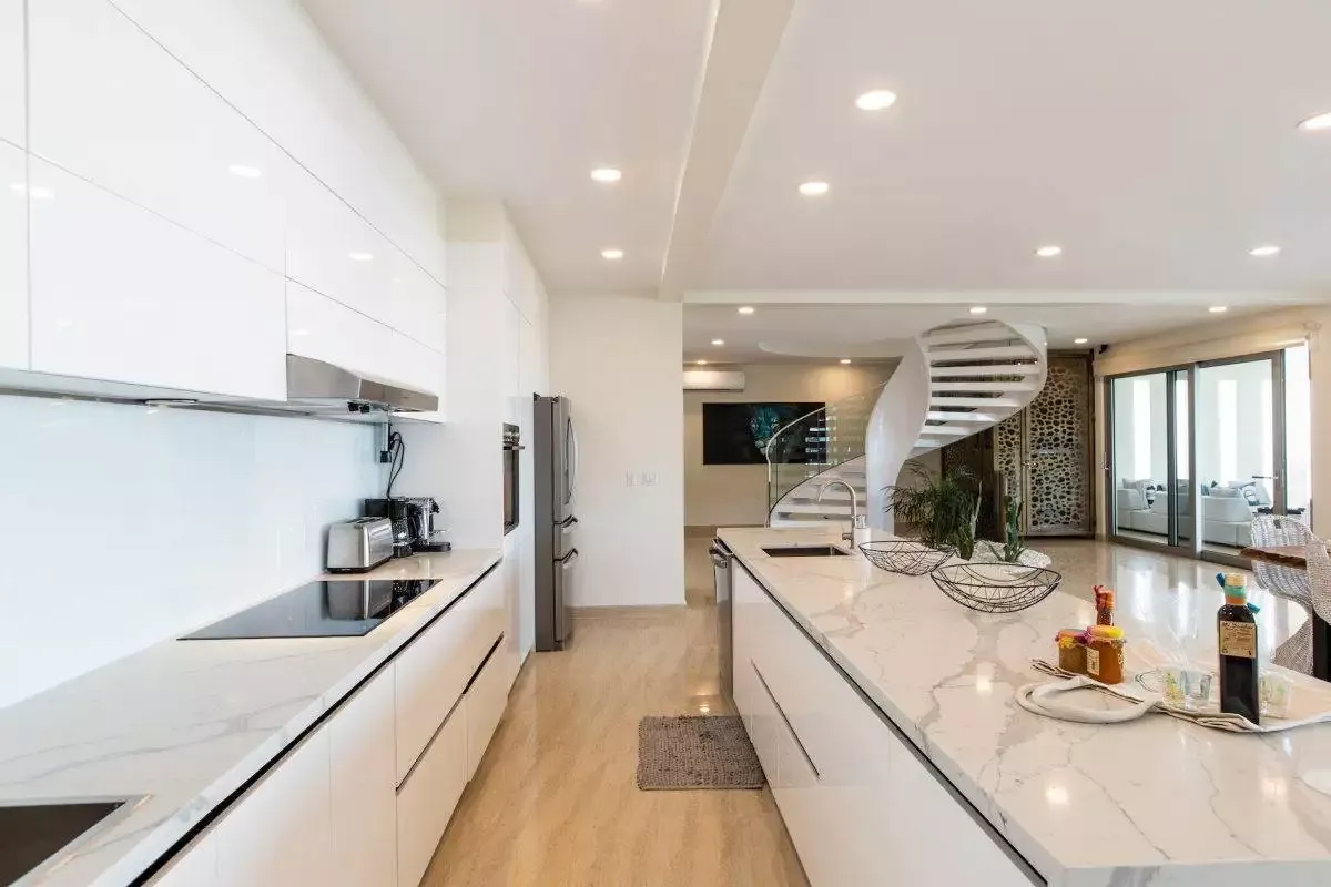 As you enter the spacious lobby located on the ground level, a magnificent spiral staircase and an elevator will take you to the first lower level, where you will find a spacious air-conditioned living/kitchen area where you will share wonderful moments with family and friends.