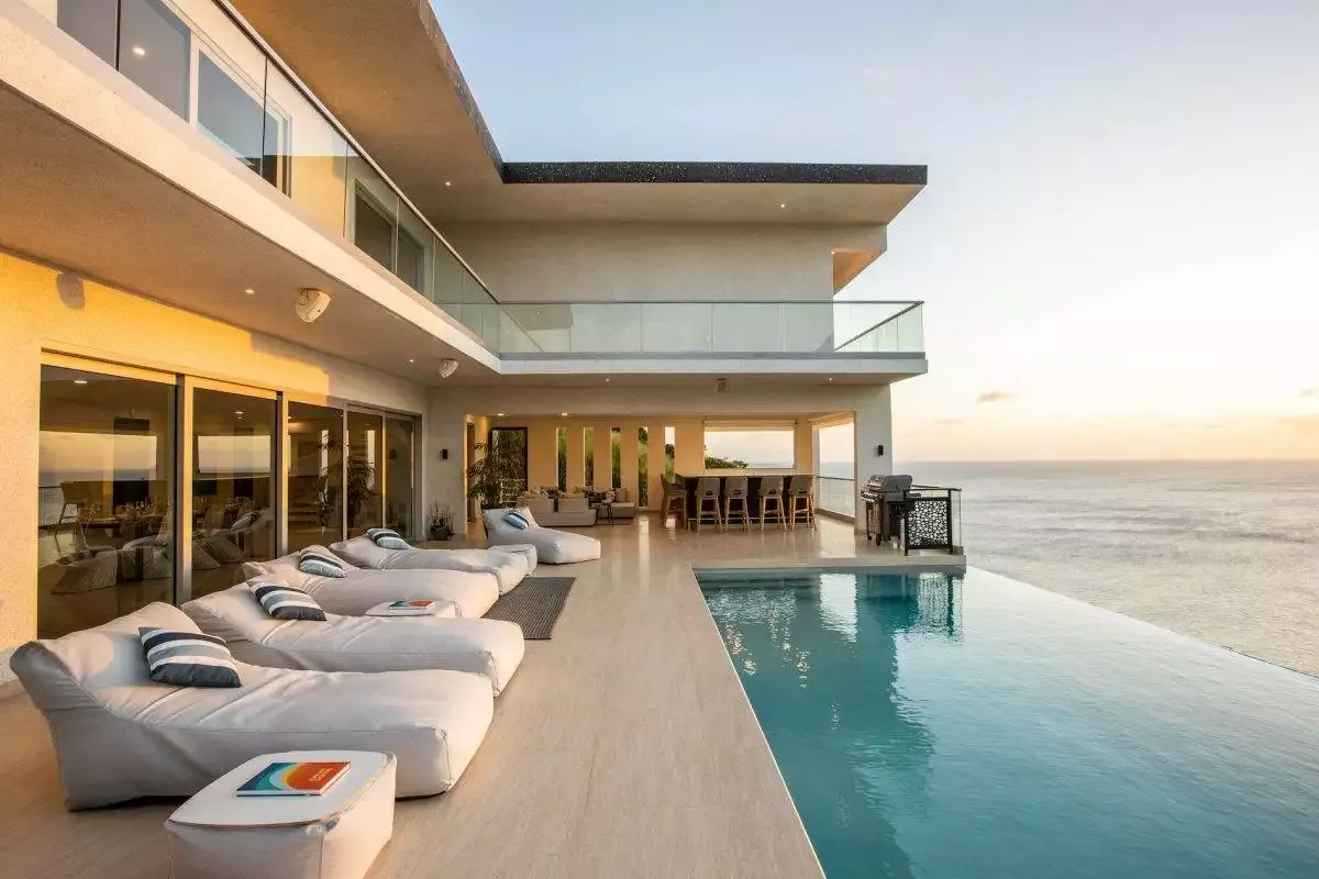 The outdoor seating area with its comfortable sofa is the perfect place to relax. You can also entertain your guests by cooking in the well-equipped outdoor kitchen while they sip a delicious cocktail at the outdoor bar overlooking the ocean.
