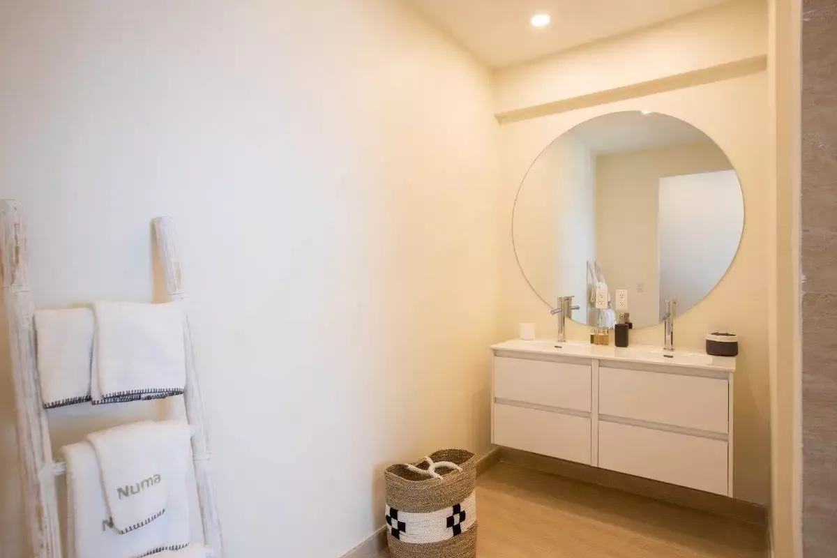 Villa Numa has six elegant bedrooms, all with exceptional sea views and their own luxurious bathroom. Located on the ground level, four of the bedrooms are connected to the lobby by a beautiful hallway, while the fifth and the sixth bedrooms located on the second lower level are accessible by an external staircase.