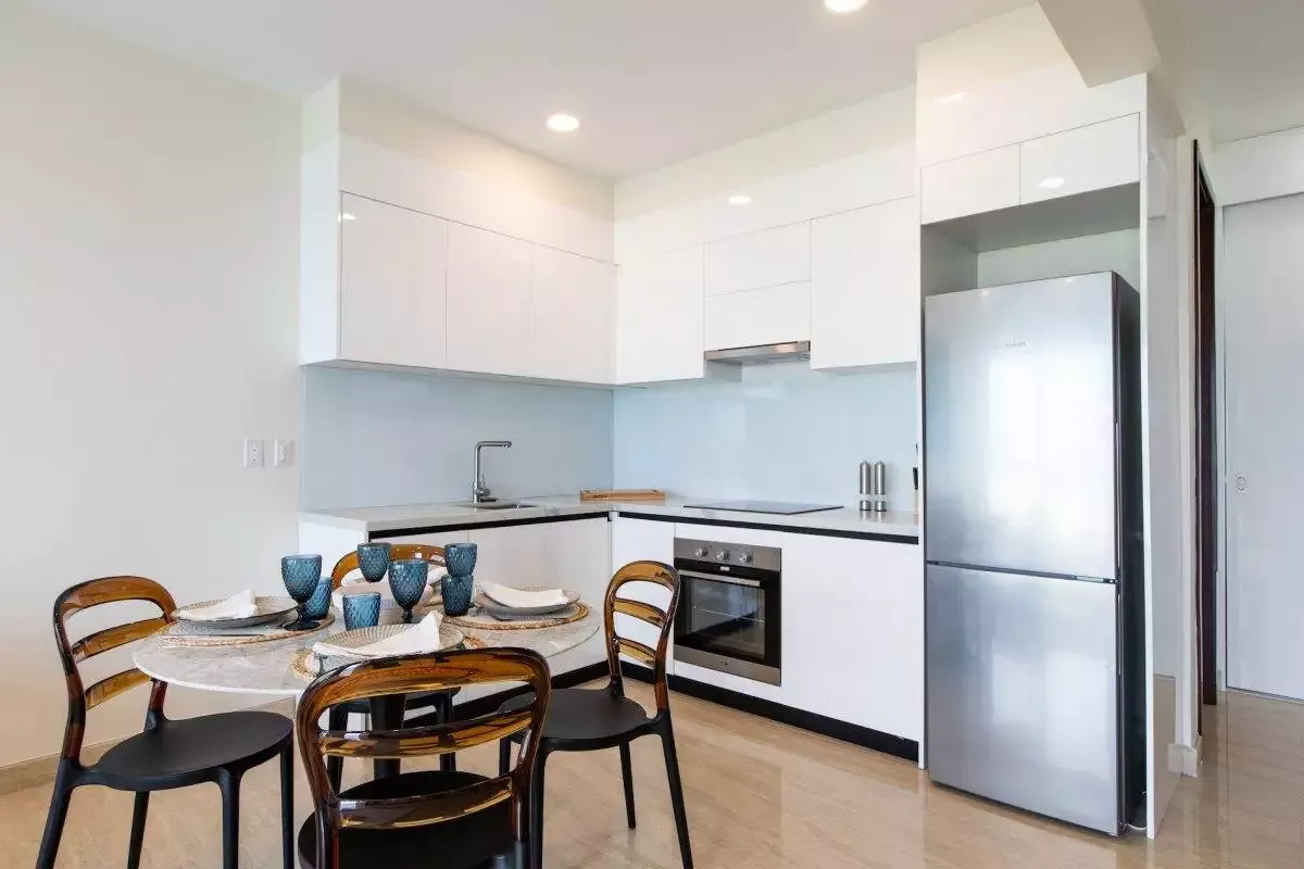 The sixth bedroom opens to its own living room and well-equipped kitchenette, perfect for a nanny or someone looking for more privacy.